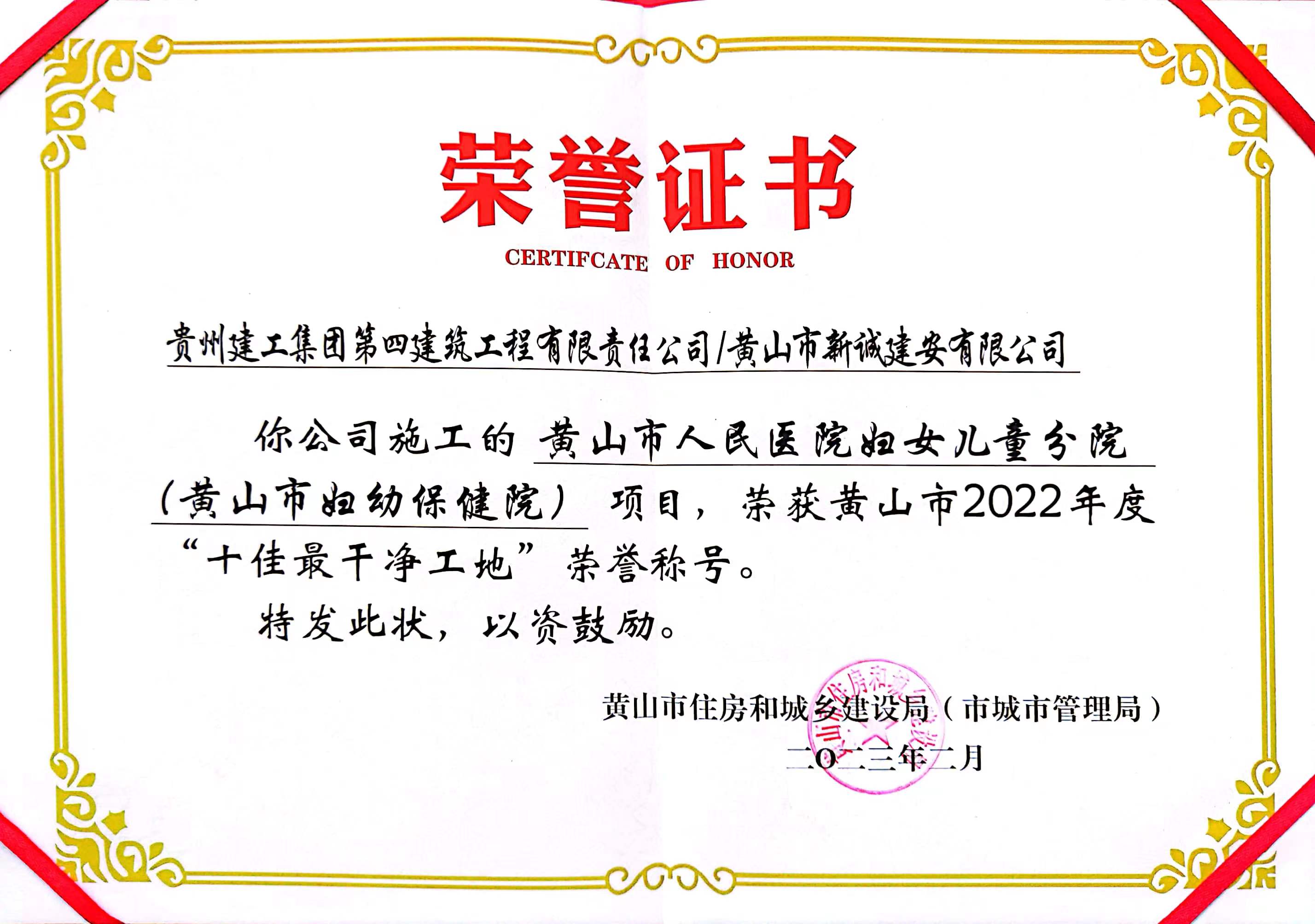 黃山市人民醫(yī)院婦女兒童分院項(xiàng)目榮獲2022年度“十佳最干凈工地”榮譽(yù)稱號