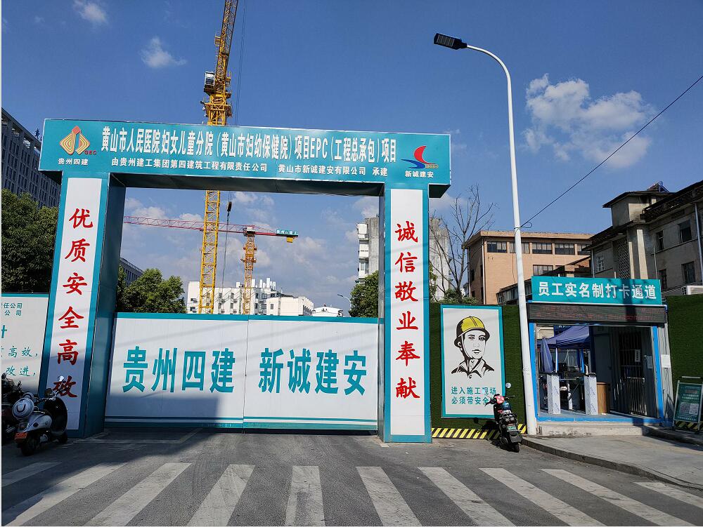 在安徽省黃山市人民醫(yī)院婦女兒童分院(黃山市婦幼保健院)建設(shè)工地上,綠植圍擋一目了然,各類標(biāo)語生動鮮明,降塵、霧炮、噴淋系統(tǒng)等一應(yīng)俱全,現(xiàn)場標(biāo)準(zhǔn)化、工具化、定型化管理科學(xué)規(guī)范,給人一種耳目一新的感覺。